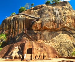 Sigiriya (Lion's rock) is a town with a large stone and ancient rock fortress and palace ruin in the central Matale District of Central Province, Sri Lanka , surrounded by the remains of an extensive network of gardens, reservoirs, and other structures. A popular tourist destination, Sigiriya is also renowned for its ancient paintings ( frescos ), which are reminiscent of the Ajanta Caves of India . It is one of the eight World Heritage Sites of Sri Lanka .